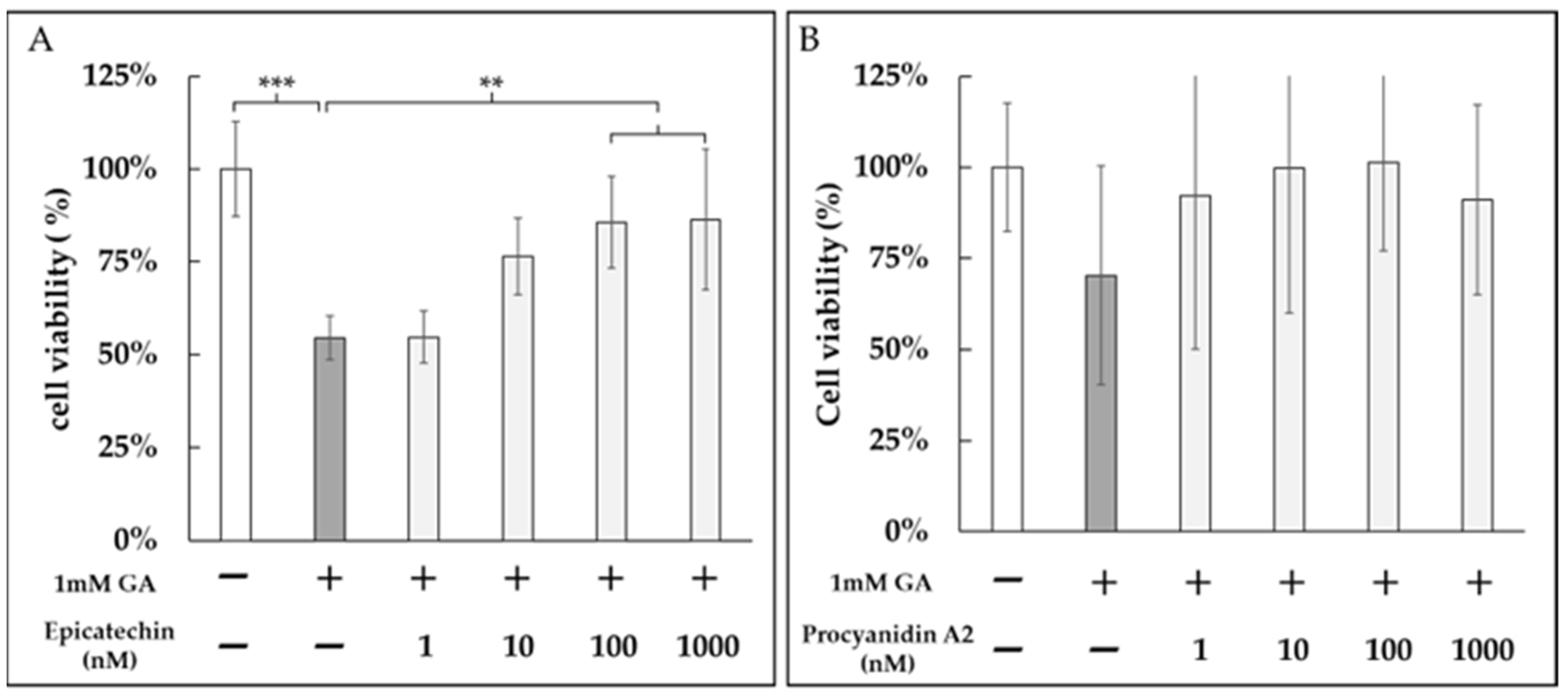 3.6. Epicatechin and Procyanidin A2 Inhibited GA-Induced Cytotoxicity