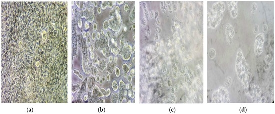To determine the effect of the EOs on the viability of cells, approximately, 105 mature cells/mL were transferred in a 12-well tissue culture plate and left for 48 h to establish adherence to plate before different concentrations of EOs were mixed with DMEM media and 500 µL/mL of such mixture were pipetted into each well. Some wells with media containing no EOs were used as control. After 24 h the media were aspirated and cells were trypsinized, collected and resuspended in an equivolume of 0.4% Trypan blue (Sigma-Aldrich, Pool, UK). This experiment was done in triplicates and repeated three times. The percentages of viable cells were counted using an inverted microscope and the percent of viability was determined in comparison with the control. Photos for cells under the microscope at different time intervals were taken using a Nikon™ Coolpix, 5400 digital camera (Nikon Inc., Melville, NY, USA).