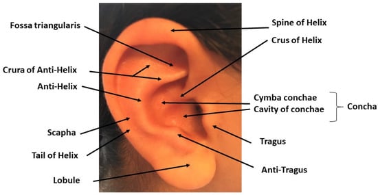 - Rabischong, P.; Terral, C. Scientific Basis of Auriculotherapy: State of the Art. Med. Acupunct. 2014, 26, 84–96. [Google Scholar] [CrossRef] [PubMed]