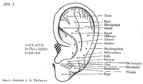 Ear maps were gradually enriched with points corresponding not only to body organs but also to central nervous system structures such as thalamus, basal ganglia, anterior commissure with many differences among the various cartographies developed. The World Health Organization (WHO) contributed to standardization by developing the first International Nomenclature in 1990.