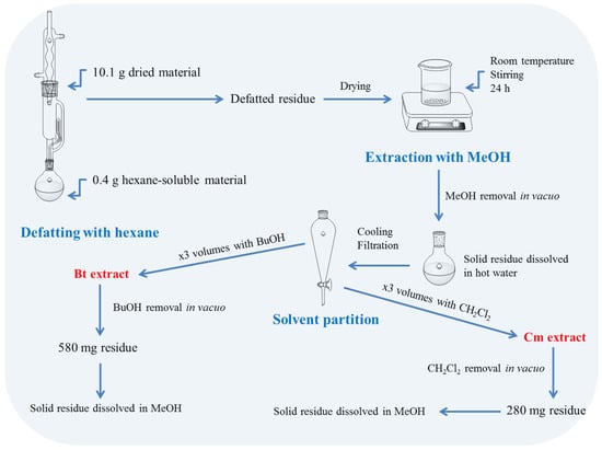 Overview of the analytical procedure followed to generate dichloromethane (Dcm) and n-butanol (Bt) fractions of S. mucronata.