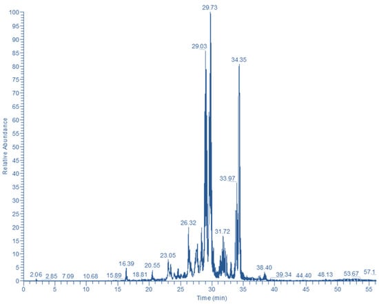 Total ion current (TIC) showing the major polyphenolic phytochemicals detected in n-butanol fraction of S. mucronata.