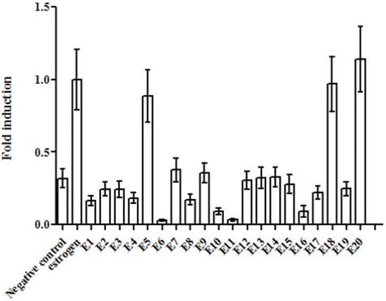 - Du, J.; Wei, Y.; Peng, C.; Ran, X.; Zhang, H.; Jiang, Y.; Rahman, K.; Qin, L. Establishment of a luciferase assay-based screening system for detecting estrogen receptor agonists in plant extracts. Bone 2011, 49, 572–579. [Google Scholar] [CrossRef] [PubMed]