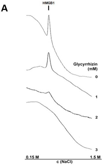 - Mollica, L.; De Marchis, F.; Spitaleri, A.; Dallacosta, C.; Pennacchini, D.; Zamai, M.; Agresti, A.; Trisciuoglio, L.; Musco, G.; Bianchi, M.E. Glycyrrhizin binds to high-mobility group box 1 protein and inhibits its cytokine activities. Chem. Biol. 2007, 14, 431–441. [Google Scholar] [CrossRef] [PubMed]
