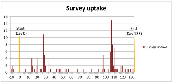 Survey uptake over time, showing the effects of the reminder sent five weeks before closure.