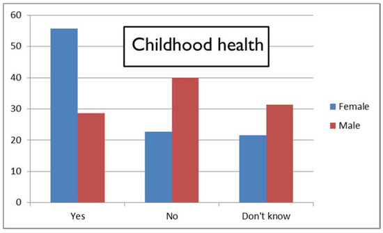 Percentages of female and male respondents giving “Yes”, “No”, and “Don’t know” responses regarding the item on childhood health (NOW responses).