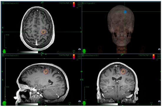 - Nataf, F.; Schlienger, M.; Liu, Z.; Foulquier, J.N.; Gres, B.; Orthuon, A.; Vannetzel, J.M.; Escudier, B.; Meder, J.-F.; Roux, F.X.; et al. Radiosurgery with or without a 2-mm margin for 93 single brain metastases. Int. J. Radiat. Oncol. Biol. Phys. 2008, 70, 766–772. [Google Scholar] [CrossRef] [PubMed]