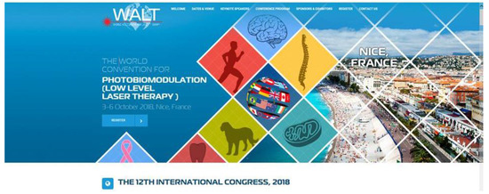 World Association for photobiomoduLation Therapy (W.A.L.T.). 12th International Congress, Nice, France, 3–6 October 2018 (© WALT).