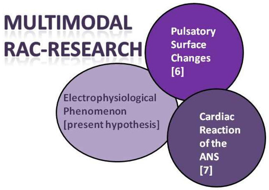 7] also from the Medical University of Graz in Austria published proof that RAC follows physiological laws quite well. The study was based on a previous series of tests based on heart rate variability measurements and analyses and showed various reproducible changes of physiological parameters. A total of seven parameters were recorded, as well as different external non-invasive stimuli under a defined set-up and test course. The authors assumed that RAC is a manifestation of a cardiac reaction of the autonomic nervous system, which then—in the sense of a stimulus response—triggers a pulse wave. They concluded that the use of subtle stimuli near the limit of perceptibility should be appropriate to allow repeatable testing of the immediate vagal as well as the delayed sympathetic response. In order to determine the efficiency or the diagnostic value of the test series, further studies are necessary. In particular, the pathways from the source of the stimulus to the autonomic nervous system (ANS) response would vary depending on the stimulus selected and be complex. Individual patient features have not yet been looked at in depth.