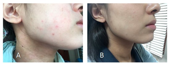 Facial photo before (A) and two weeks after application (B) of SE Moisture Creamy Gel (taken on 17 April 2018) (unpublished data).