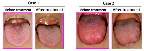 When the patient with xerostomia-induced glossitis was treated with Byakkokaninjinto (3 g three times a day) for two months, glossitis largely disappeared, and the subjective symptoms decreased (Figure 14).