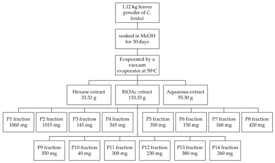 Fractionation of EtOAc extract from powder of C. hindsii leaves.
