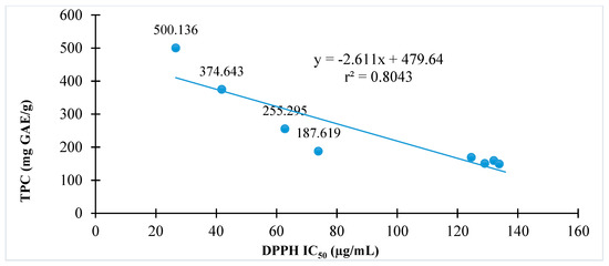 The relationship between antioxidant activity and total phenolic contents of C. hindsii by 1,1-diphenyl-2-picryhydrazyl (DPPH) radical scavenging method.