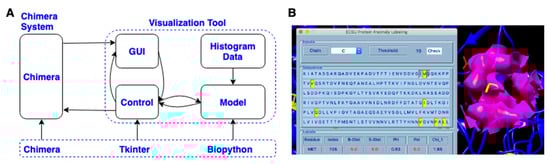 (A) The architecture of the visualization tool; (B) The Graphical User Interface (GUI) of the tool in Chimera.