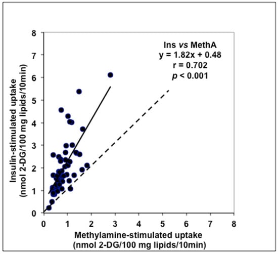 3.2. Stimulation by Methylamine of Glucose Transport in Adipose Cells from Non-Obese, Overweight, and Obese Patients
