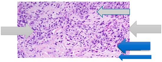 According to the criteria proposed by von der Driesch in 1994 [], classical Sweet’s syndrome was diagnosed. According to these criteria, the presence of both major criteria and two of the four minor criteria is required in order to diagnose this syndrome (Table 1).