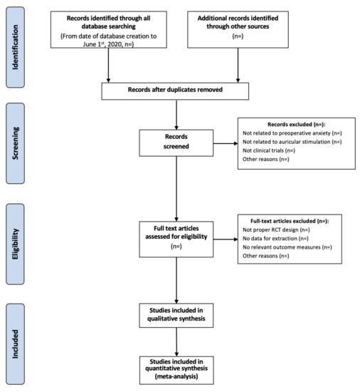 This review and meta-analysis will fill this gap, analyzing the RCTs based on this protocol, which was designed according to the PRISMA statement (Supplementary Materials). The review will calculate and summarise the data on the efficacy and safety of auricular stimulation in the treatment of preoperative anxiety in adult patients scheduled for elective surgery.