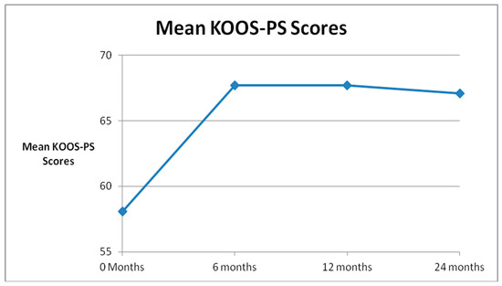 Mean Knee injury and Osteoarthritis Outcome Score Physical Shortform (KOOS-PS) Scores.