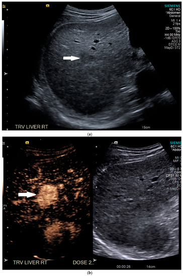 - Pang, E.H.T.; Chan, A.; Ho, S.G.; Harris, A.C. Contrast-Enhanced ultrasound of the liver: Optimizing technique and clinical applications. AJR Am. J. Roentgenol. 2018, 210, 320–332. [Google Scholar] [CrossRef] [PubMed]