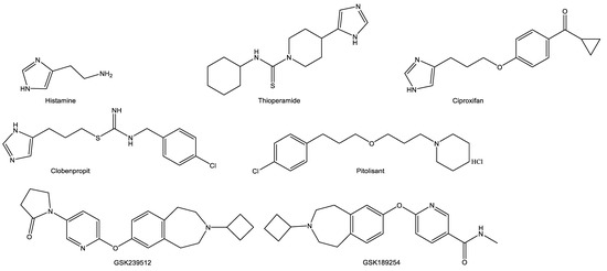 - Nieto-Alamilla, G.; Márquez-Gómez, R.; García-Gálvez, A.M.; Morales-Figueroa, G.E.; Arias-Montaño, J.A. The histamine H3 receptor: Structure, pharmacology, and function. Mol. Pharmacol. 2016, 90, 649–673. [Google Scholar] [CrossRef] [PubMed]