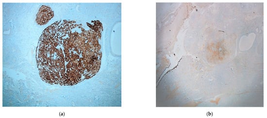 - Gaffey, M.J.; Traweek, S.T.; Mills, S.E.; Travis, W.D.; Lack, E.E.; Medeiros, L.J.; Weiss, L.M. Cytokeratin expression in adrenocortical neoplasia: An immunohistochemical and biochemical study with implications for the differential diagnosis of adrenocortical, hepatocellular, and renal cell carcinoma. Hum. Pathol. 1992, 23, 144–153. [Google Scholar] [CrossRef]
