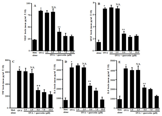 3.1. Suppression of Angiogenic Factor Secretion from Mast Cells by Quercetin