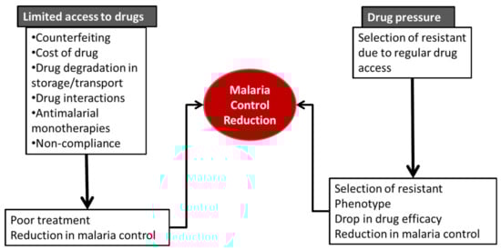This review seeks to assess the impact of these contrasting factors, limited access to drug and drug pressure, on the overall malaria treatment failure vis-à-vis its control.