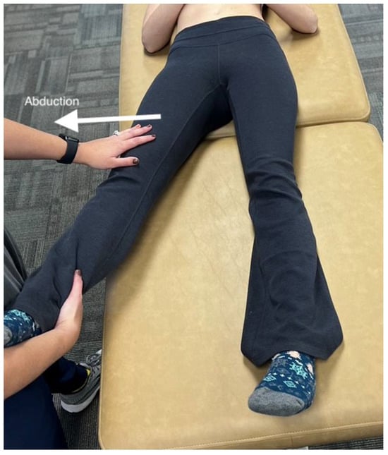 The principles of palpatory diagnosis and manipulative technique. The figure shows the procedure for the abduction of the legs. The osteopathic physician compares abduction of both left and right legs to determine which muscle to treat. Whichever leg has greater restriction compared to the other would be the leg selected for treatment.