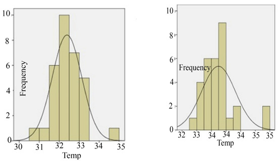 Temperature frequency in August 2008 (Left) and 2009 (Right).