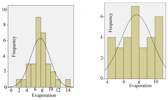 Evaporation frequency distribution in 2008 (Left) and 2009 (Right) August.