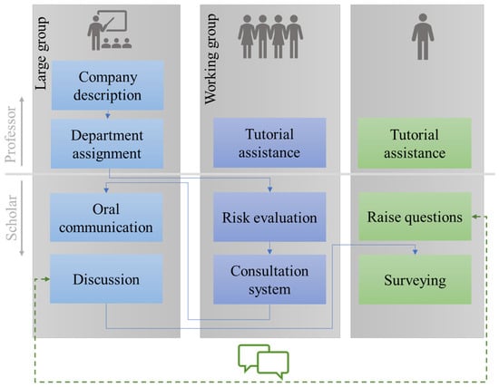The activity will be Implemented following the requirements set out in Table 3. Scholars will know these requirements from the explanation of the activity (Figure 1) in advance and these should be considered to design the consultation system. The structure and all the sections of ISO 45001 were previously explained in the classroom. The activity will be carried out for two hours in the presence of the professors. In this way, the professors will be able to solve the students’ doubts and observe their attitudes (Figure 1). After this period, students will work autonomously (out of class), but the professors will remain as a consultant for 4 h a week. In these mentoring spaces, students will be able to go to the professor’s office to ask any questions they may have.