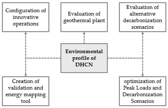 This subsection aims to present the main scientific evidence gathered through the literature analysis by the authors. Various contributions have been categorized into macro-groups based on the topics addressed in the discussions, aiming to provide a comprehensive technical overview and highlight any limitations. The authors have noted that applying an environmental assessment to DHC has allowed previous studies to support various theses, ranging from the presentation of more or less complex decarbonization scenarios to the development of evaluative tools and energy mapping. A mind-map illustrating this concept is presented in Figure 6.
