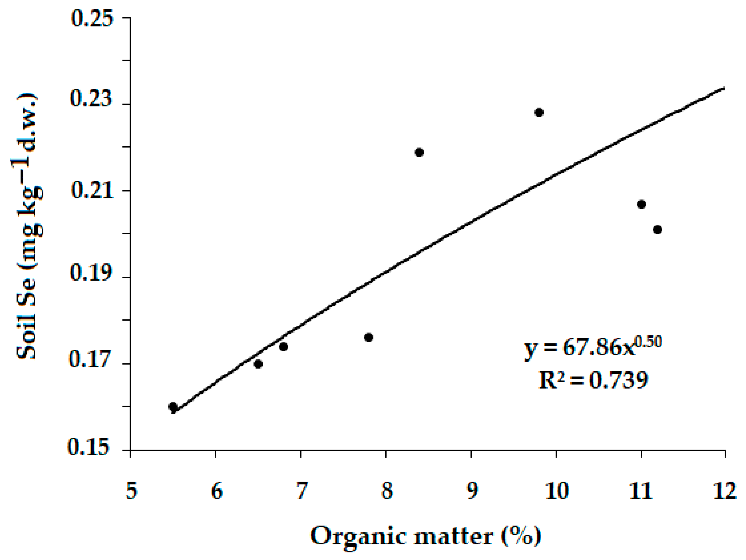 Supposedly, the S-W area shows intensive Se adsorption on Fe oxides and OM, which is in accordance with soil Se properties [47].