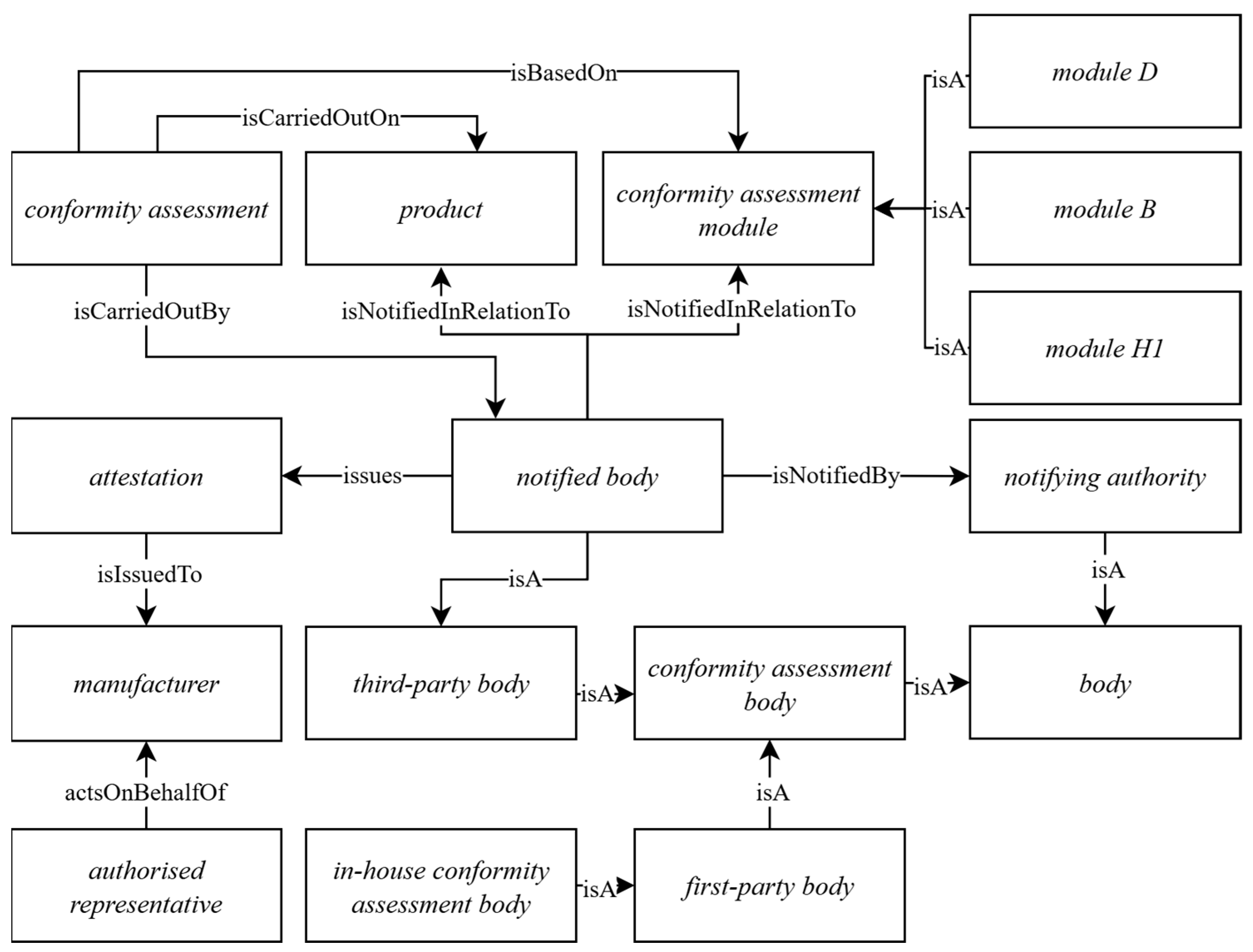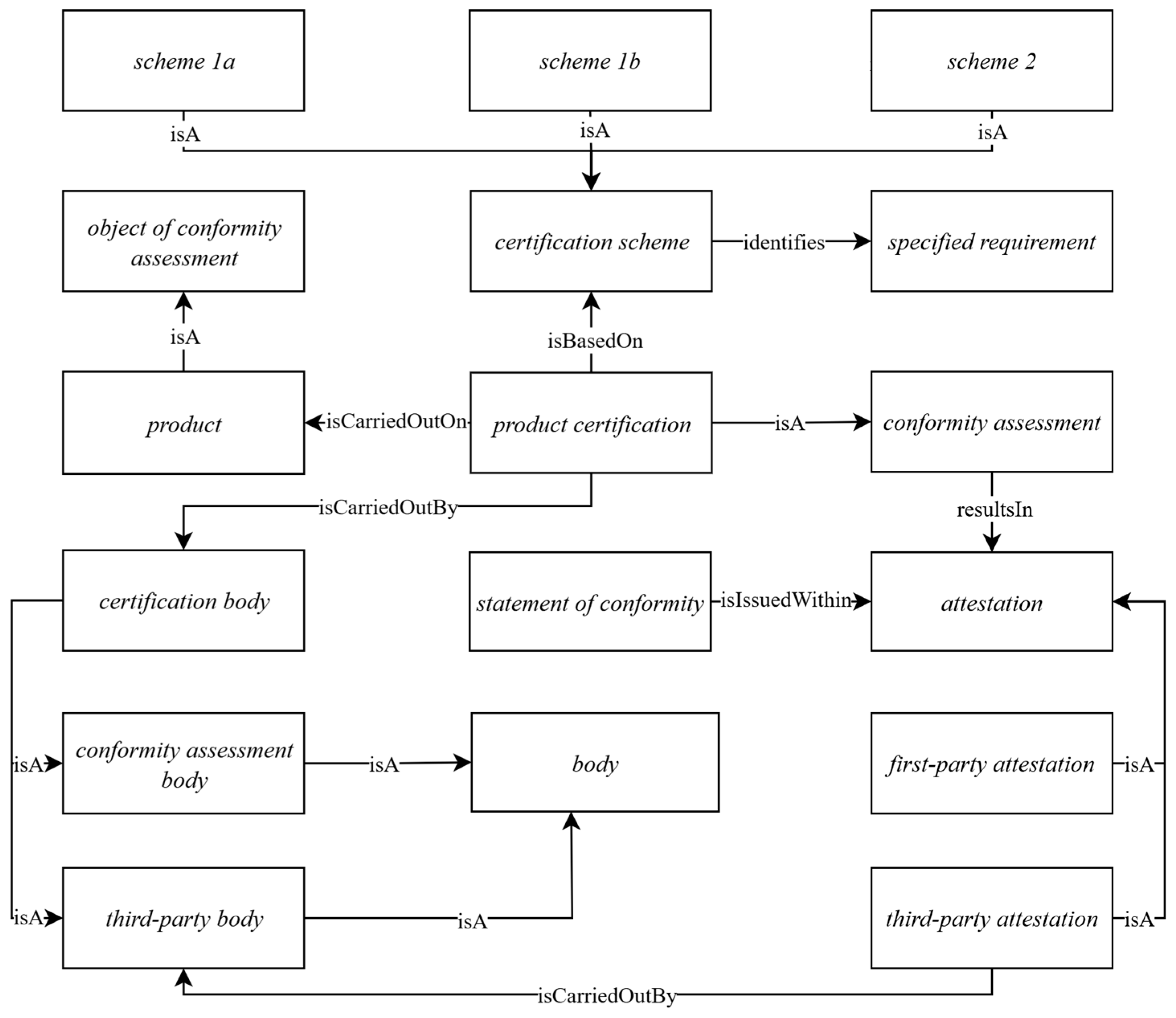 9] intended to provide a common understanding of the product-related EU rules and its implementation rules within the NLF. Thus, the principle of conformity assessment in the legally regulated area is based on legislation and standardization. It is therefore of great importance to consider both fields in semantic analysis. The following Sections present terminology systems that provide basic terminological knowledge from both fields with a focus on a conformity assessment type of product certification.