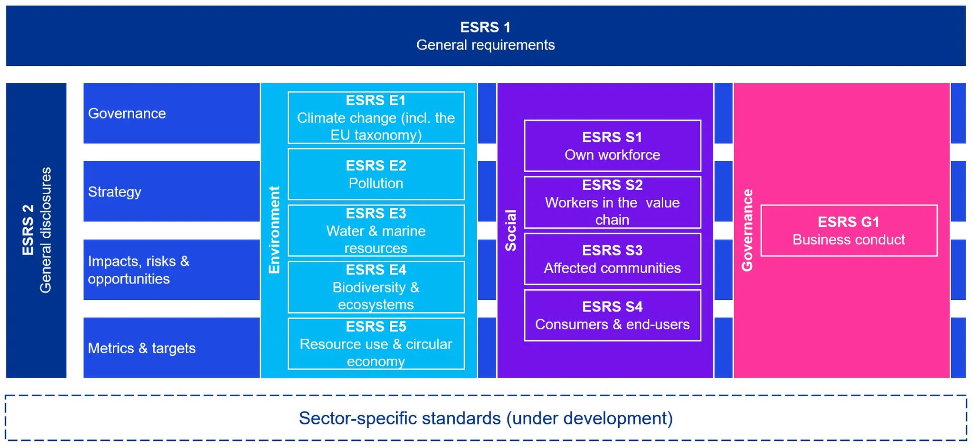 - The CSRD described above includes the development of ESRS; companies within the CSRD will have to report on double materiality—financial and impact materiality.