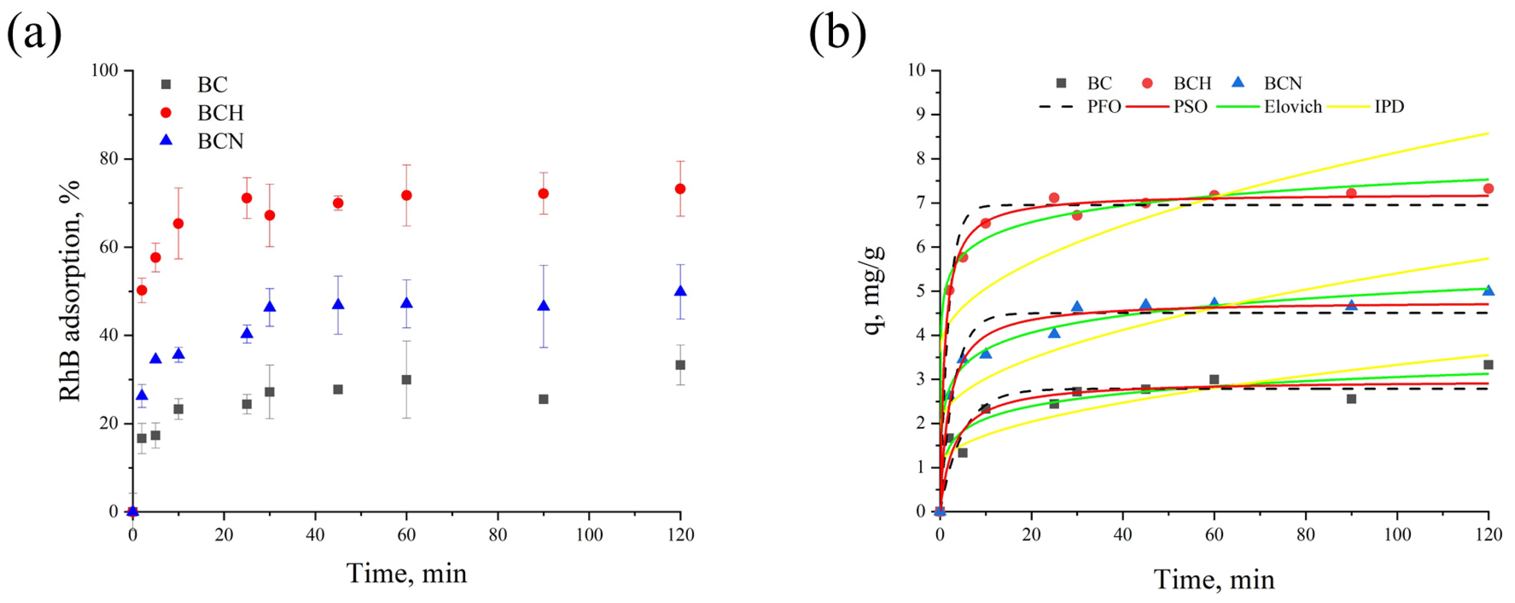 APA StyleKanafin, Y. N., Mukhametrakhimova, A., Turpanova, R., & Poulopoulos, S. G. (2026). Sustainable Adsorption of Rhodamine B and Heavy Metals Using Sewage Sludge-Derived Biochar. ChemEngineering, 10(1), 11. https://doi.org/10.3390/chemengineering10010011