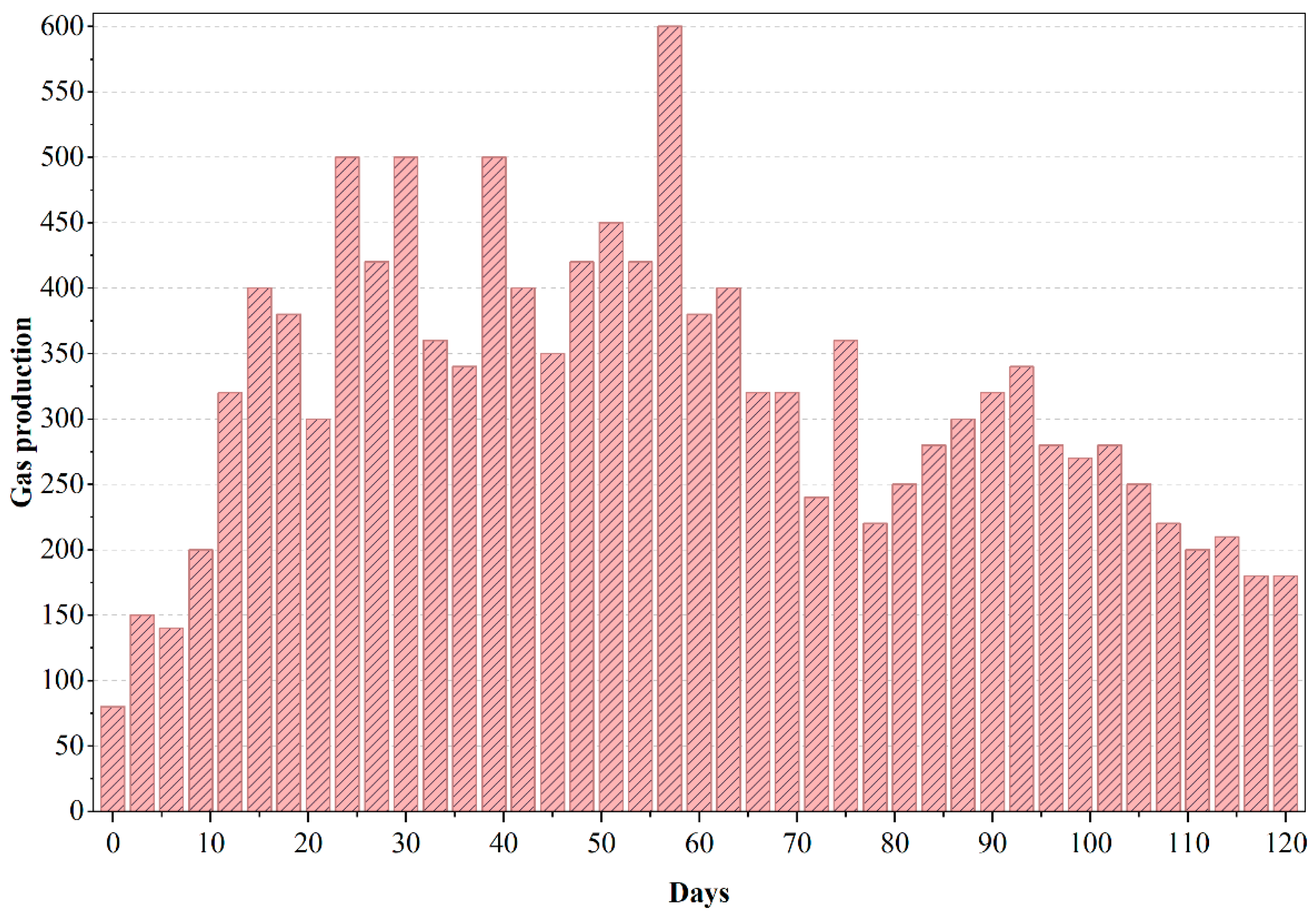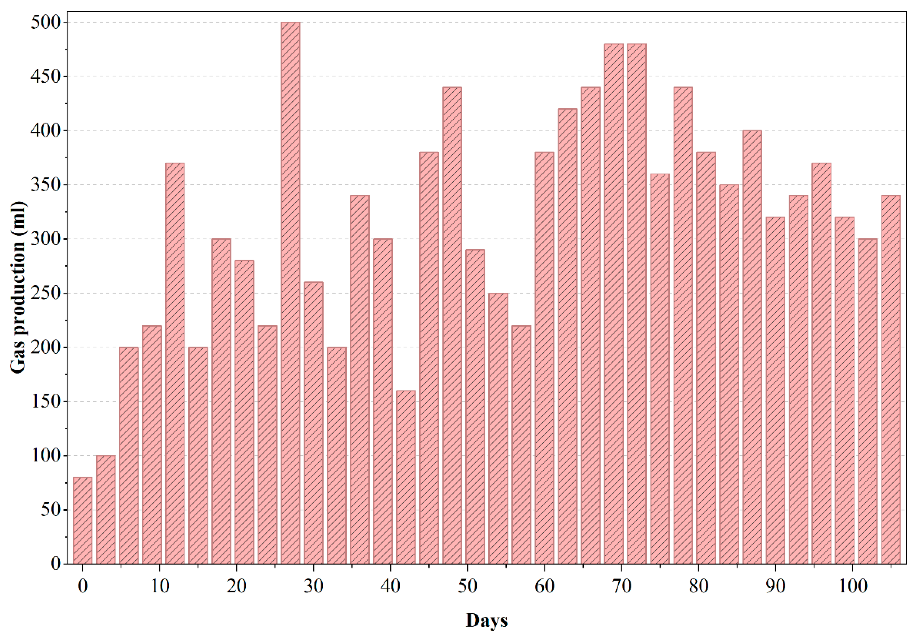 Figure 7. Gas production of anaerobic reactor treating PWW3.