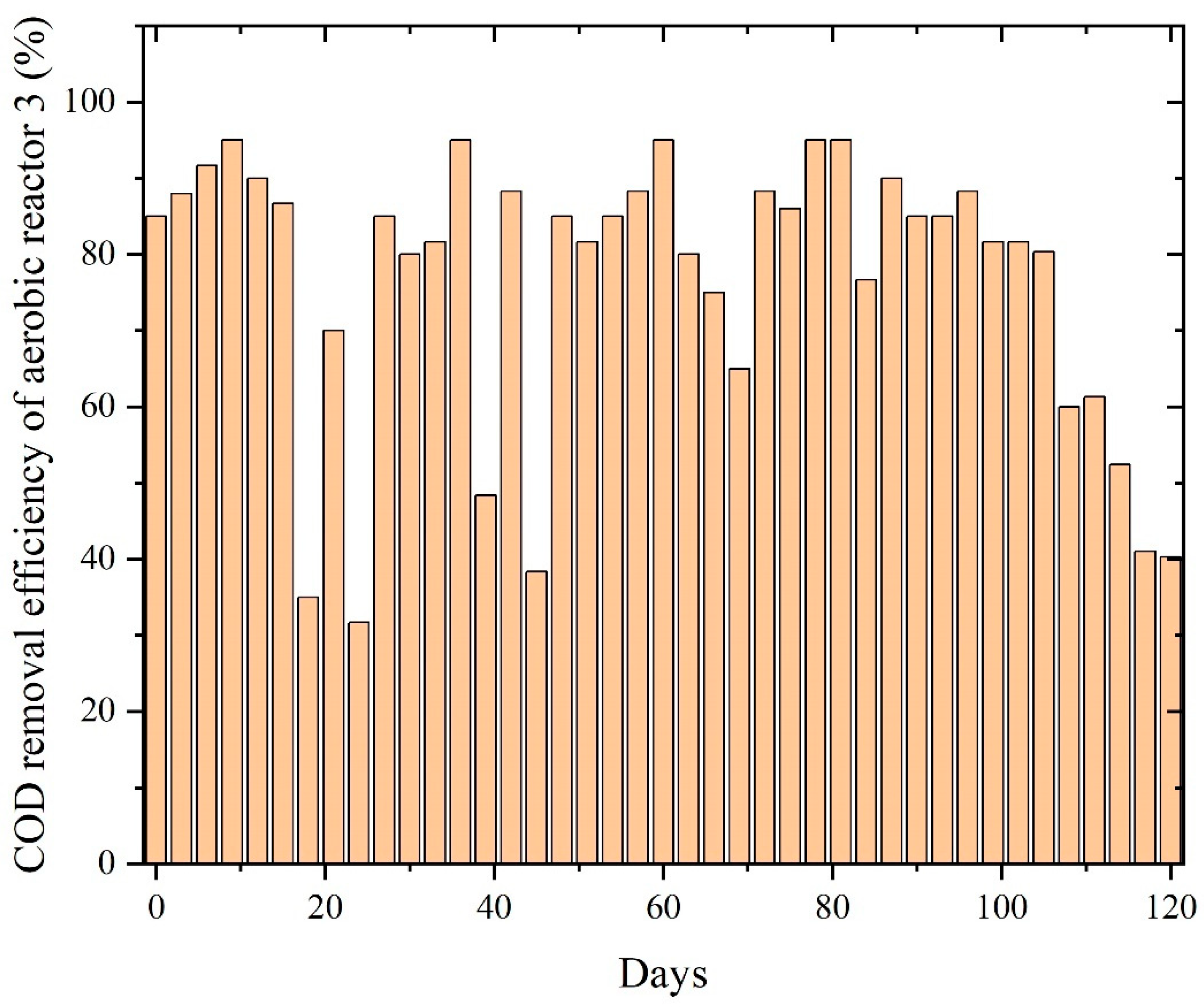 Figure 10. COD removal efficiency of aerobic reactors treating PWW3.