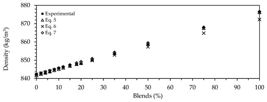 - Alptekin, E.; Canakci, M. Determination of the density and the viscosities of biodiesel–diesel fuel blends. Renew. Energy 2008, 33, 2623–2630. [Google Scholar] [CrossRef]