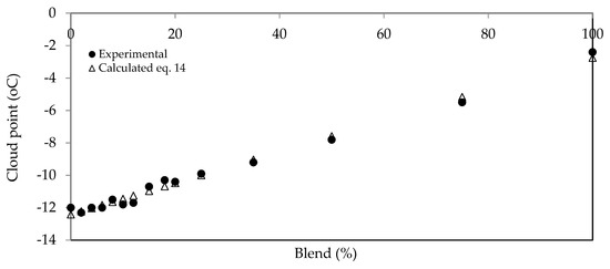 | Blend (%) | Density (kg/L) | Kin. Viscosity (cSt) | Flash Point (°C) | Pour Point (°C) | Cloud Point (°C) |