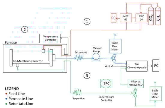 Sketch of the lab-scale plant for permeation and reaction experiments.