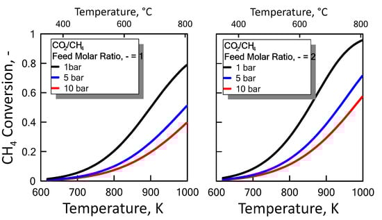 - Chein, R.Y.; Chen, Y.C.; Yu, C.T.; Chung, J.N. Thermodynamic analysis of dry reforming of CH4 with CO2 at high pressures. J. Nat. Gas Sci. Eng. 2015, 26, 617–629. [Google Scholar] [CrossRef]