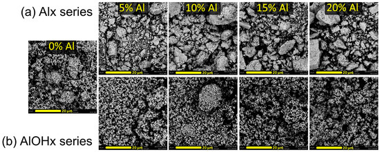 SEM images of (a) the Alx series and (b) the AlOHx series.