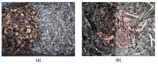 Tested materials—(a) Green wood chips; (b) Wet bark.
