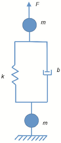 Figure 1 depicts two particles of mass m connected by a KV model, which is defined as a “KV” bond and implemented numerically as described in the next section. When a KV bond is displaced by a distance X from its equilibrium position, the resulting force is given by the following relationship: