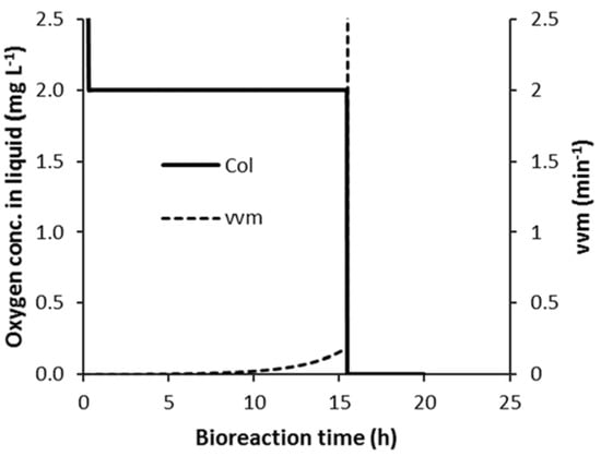 | COL | oxygen concentration in the bioreaction liquid (mg L−1) |