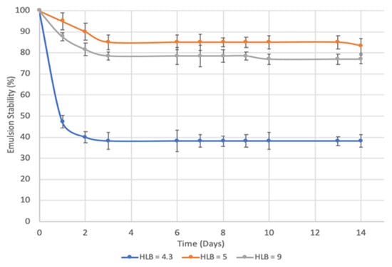 17]. It is possible to predict the type of emulsion that will form based on the hydrophilic-lipophilic balance (HLB) value of the surfactant used [