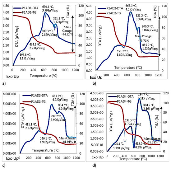 4.2.3. Differential Thermal Analyses and Thermogravimetric Analyses