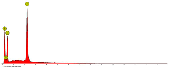 Energy Dispersive X-ray Spectroscopy (EDS): This technique for elemental analysis was performed with a scanning electron microscope (SEM, Phenom Pro-X, Nanoscience Instruments) by selecting three different mapping areas in the secondary electron mode with an acceleration voltage of 15 kV. All samples were deposited on a silicon wafer for SEM/EDS measurement after they were dispersed in pure ethyl alcohol and sonicated for 1 h. EDS measurement of each mapping area took about seven minutes, so the total collecting time was 21 min for the three different mapping areas to obtain better statistics or consistency. Figure 4, Figure 5 and Figure 6 show the EDS elemental composition of each sample, while the obtained elemental concentrations from the EDS studies are presented in Table 1. The analysis of the data indicates that all of these salts had a different ratio of carbon, nitrogen, oxygen, and sulfur, while only PSTFSILi exhibited 8.2% F. Lithium ions were too small to be detected by the instrument.