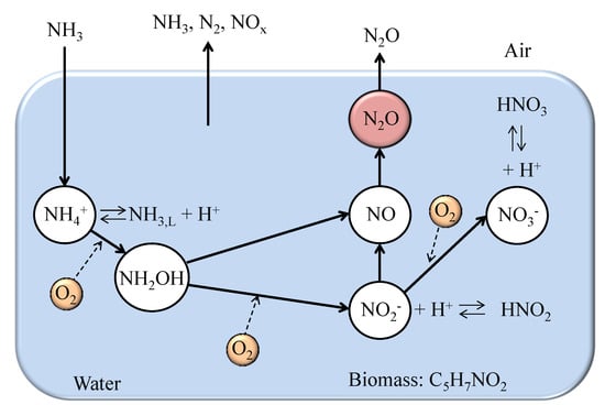 - Kampschreur, M.J.; Temmink, H.; Kleerebezem, R.; Jetten, M.S.M.; van Loosdrecht, M.C.M. Nitrous oxide emission during wastewater treatment. Water Res. 2009, 43, 4093–4103. [Google Scholar] [CrossRef] [PubMed]